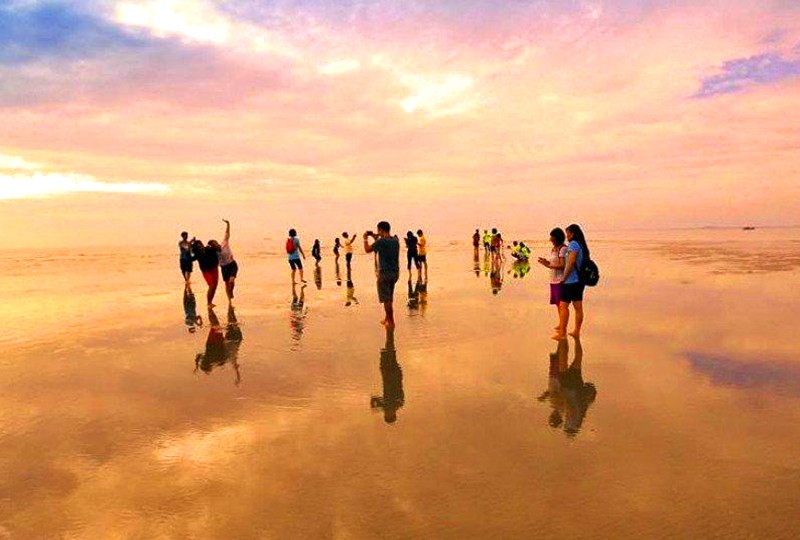 看這片天空之鏡,要趁退潮。如在上半年看天空之鏡,要在農曆初一、十五,及其前3天和後兩天才可看到。 如在下半年看,就在初一、十五,及其前兩天和後3天才可看。 每天潮退的時間都有差別,所以沒有設定好的船期表,而且在出發前要謹記跟船公司保持聯絡,因潮退的時間或有多少改變。