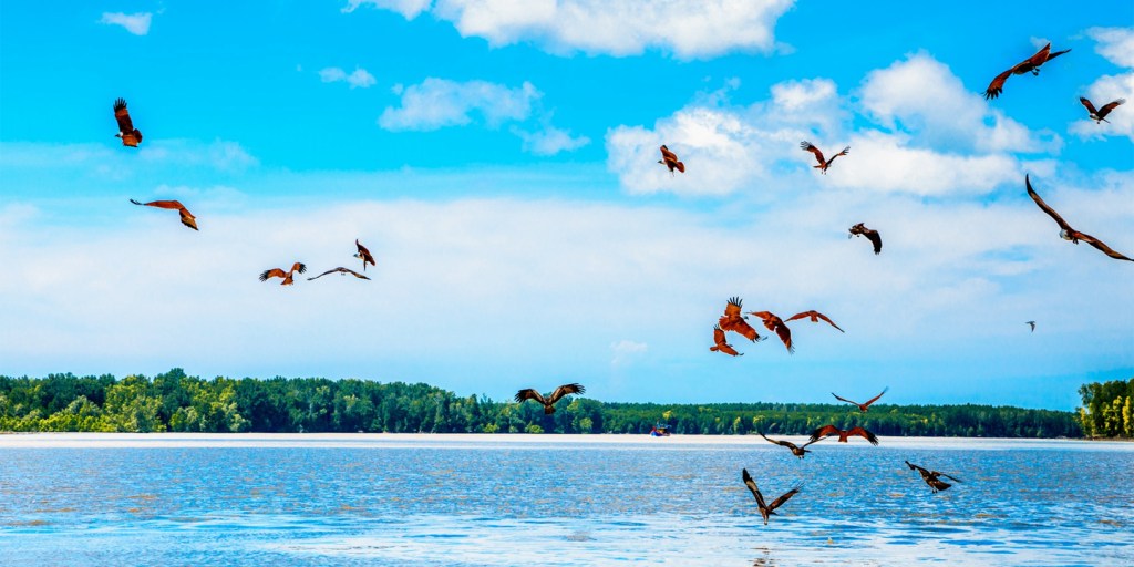 離開魚排後,小艇再駛回河裏去,有幸的話可碰到海豚,但船家也有人為的節目安排,就是餵老鷹環節:他們準備好雞皮,白頭鷹聞香在河上盤飛,船家 隨手一甩,鷹群即俯衝搶吃,也是一奇觀節目。