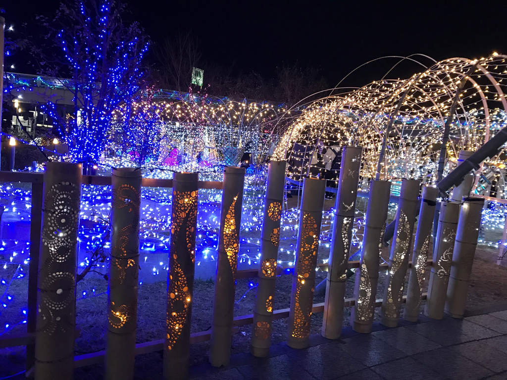 到了冬日又怎麼可以少了燈飾呢 位於長岡京市的 Bamboo 廣場公園(バンビオ広場公園)所展出的燈飾就相當特別,使用了長岡京市出產的竹,並結合閃耀的燈光製作而成的, 除了讓你感受一個不一樣的冬日魅力 ,更可以欣賞當地的名物 。