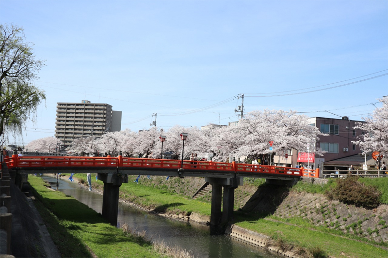袋川堤防歩道原是一條普通河堤,每到櫻花時節,河岸兩邊都會長滿櫻花。河岸總長約2公里,當中大家會經過「若櫻橋」、「湯所橋」等不同小橋,櫻花由行人路旁邊的草叢長出,從走道上繞過再向下伸往河川,形成一條小型的櫻花隧道。到了晚上更可以欣賞夜櫻,必定要與旁邊的櫻花垂枝打卡。由於袋川河鄰近民居,因此人流不算太多。在拍攝的途中不時可見附近的居民在跑步、踏單單,在賞櫻的同時,亦可了解當地生活日常,實在是一舉兩得。