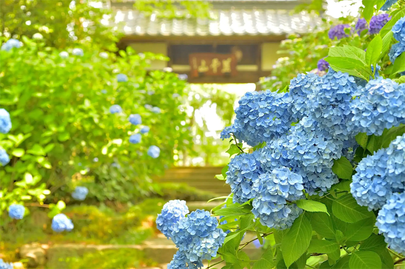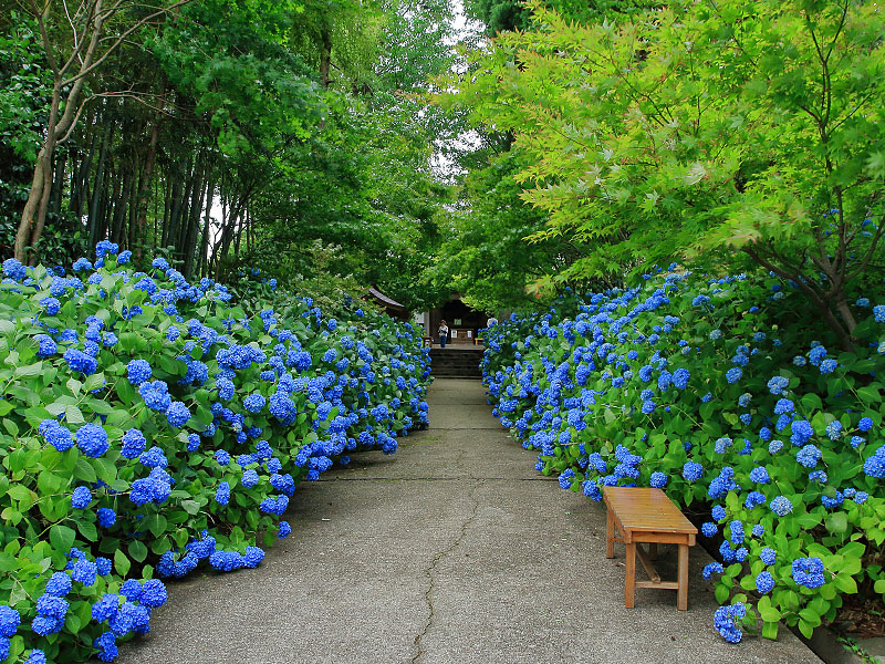 又被稱為「繡球花寺」,參道梯級兩旁種了約 1,200 株繡球花,有粉紅有紫有藍!