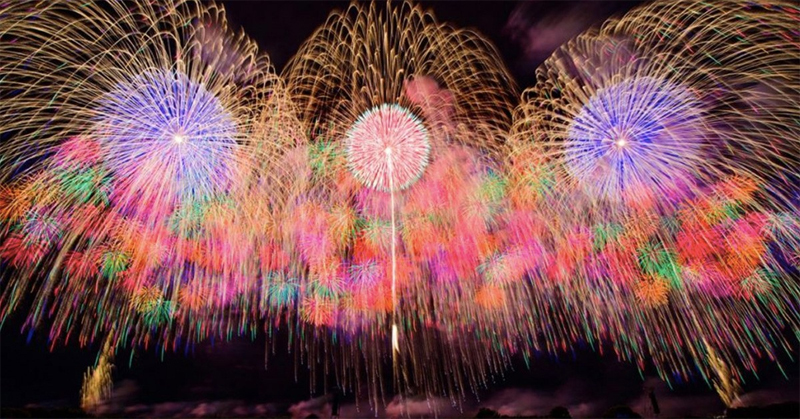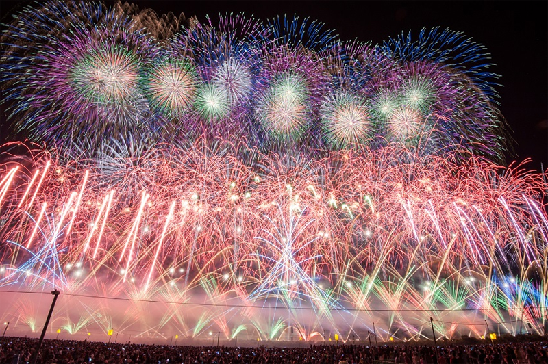 全國頂級煙花師匯聚。約 1 萬 2 千發煙花,最大直徑達700 米,震撼赤川河畔。