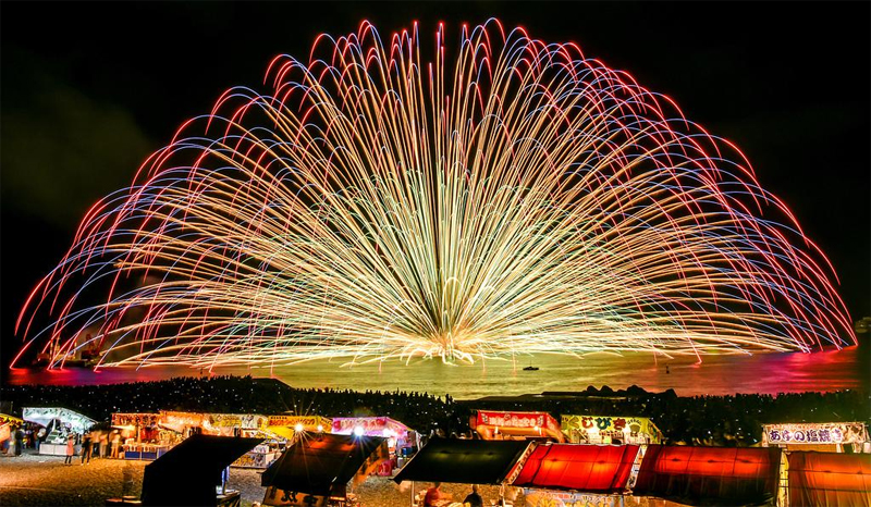 堪稱擁有 300 年傳統的花火大會。約 1 萬發煙花在距離海岸400 米海面發射到半空,煙花最大直徑約 600 米。