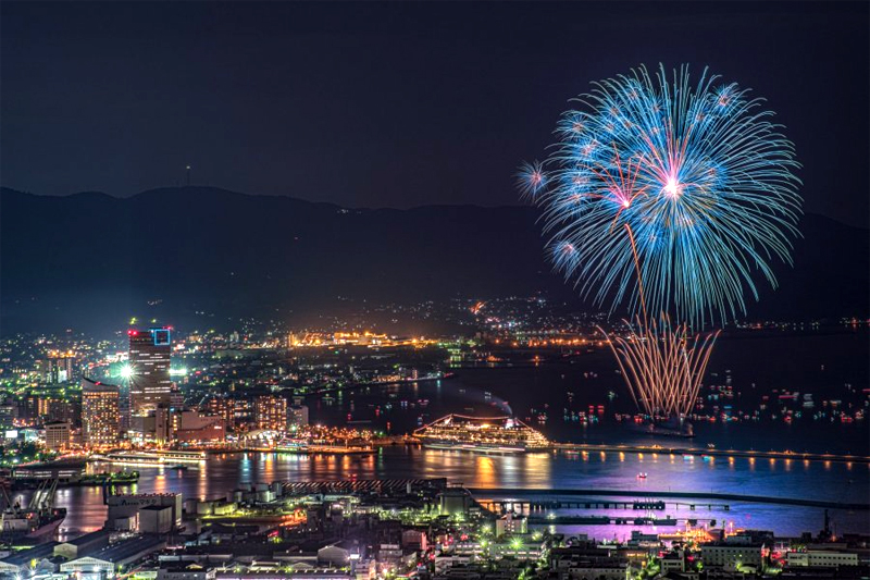 2000 年才開始的鹿兒島夏日風物詩,以首屈一指的活火山櫻島及錦江灣為背景,約 1 萬 5 千發煙花讓夏日夜空變得燦爛無比,是九州最大型的花火大會!