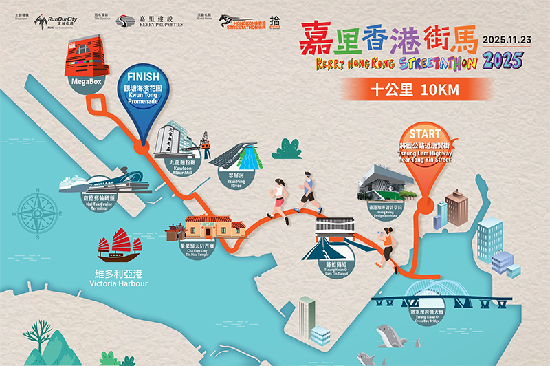 東九龍一直是香港街馬的核心跑道路段,承載著無數跑手的回憶與成長。今年,不僅讓東九龍的街頭故事延伸至西九龍,更象徵香港街馬的創新突破。十周年的香港街馬,誠邀每一位跑手一同見證這個「東西融合」的難忘時刻,留下專屬於你、屬於香港的珍貴足印!